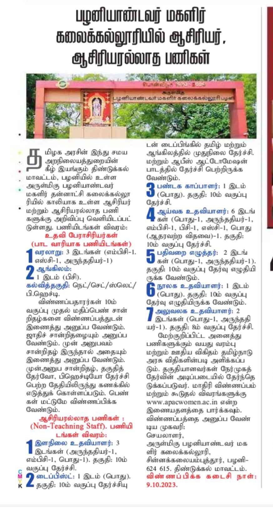 ஆசிரியர் / ஆசிரியரல்லாத பணியிடங்கள் - விண்ணப்பிக்க கடைசி தேதி 09-10-2023 CLICK HERE TO DOWNLOAD PDF Read more